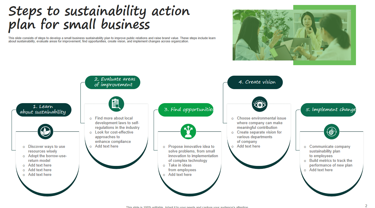 Snatch the Easy Peels: Kick off with changes that pack a punch without breaking the bank. Switch to green energy, ramp up recycling, polish that employee handbook, or rally the team for a community cleanup. These quick hits? They build mojo and set you up for more.